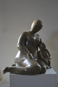 2022Beeld van moeder en kind met een groenkleurig glazuur afgebakken.